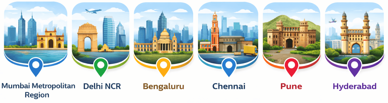 Several metropolitan regions have emerged as major warehousing hubs due to their strategic location and infrastructure connectivity. These include the Mumbai Metropolitan Region, Delhi NCR, Bengaluru, Chennai, Pune, and Hyderabad.